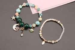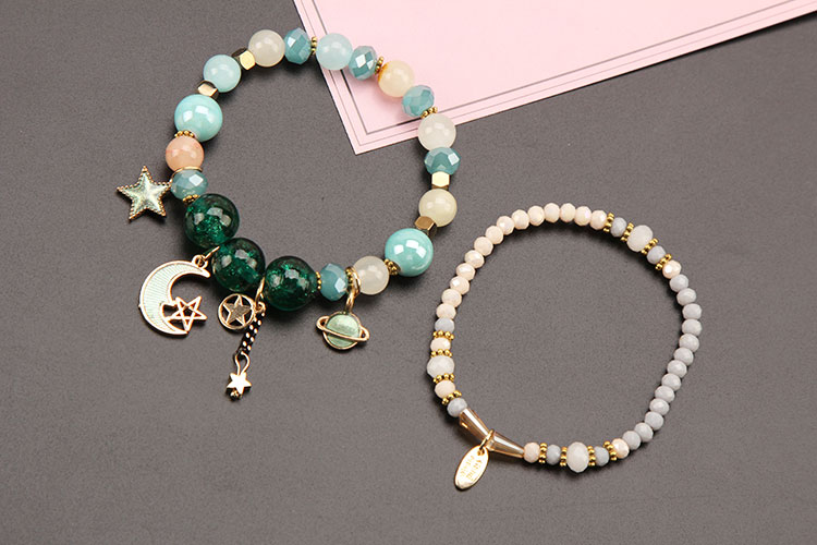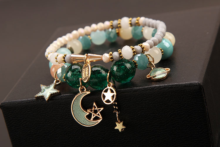 [款式G] HAND MADE JEWELRY 日系 閃亮 雙層 綠色 星空 月亮 星球 星星 手鏈 手鍊 首飾 飾品 禮物 生日禮物〔批發價$39/件〕