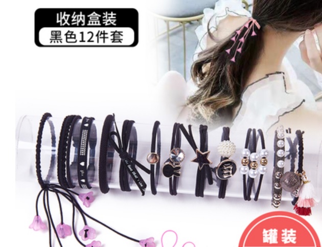 韓式 日系 新款 高貴 易搭 黑色 橡皮筋 髮繩 頭飾 紮頭 髮飾 可當 手鍊 首飾 手繩 兩用 頭繩 十二件連透明膠盒〔批發價$45/盒〕