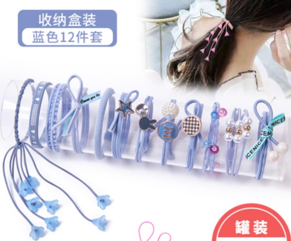 日系 韓式 新款 低調 粉藍色 橡皮筋 髮繩 頭飾 紮頭 髮飾 可當 手鍊 首飾 手繩 兩用 頭繩 易襯 十二件連透明膠盒〔批發價$45/盒〕